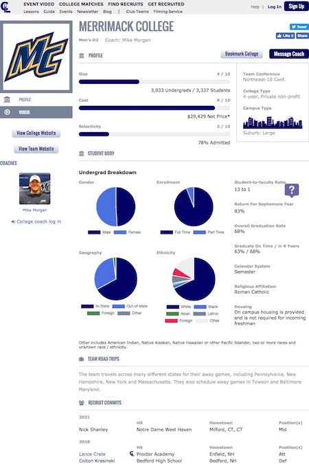 College committed to: Merrimack College