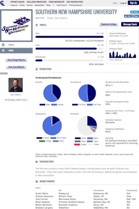 Why did you choose SNHU? “SNH is a great fit. A great school, great Coach and location, with a competitive D2 school in a great league.”