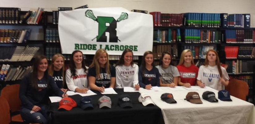 TopLaxRecruits.com, Posted 11/28/14 Nine seniors at Ridge (N.J.) headed to Division I programs to play lacrosse were honored at a ceremony during he early signing period. Ridge High seniors: Callie Dewitt, Defense, Bucknell Amanda Bosland, Midfield, Yale Shea Fitzpatrick, Attack, Marist Mackenzie Bori, Midfield, Penn State Elizabeth Behrins, Attack/?Midfield, Denver Jamie Dewitt, Goalie, Bucknell Annie […]