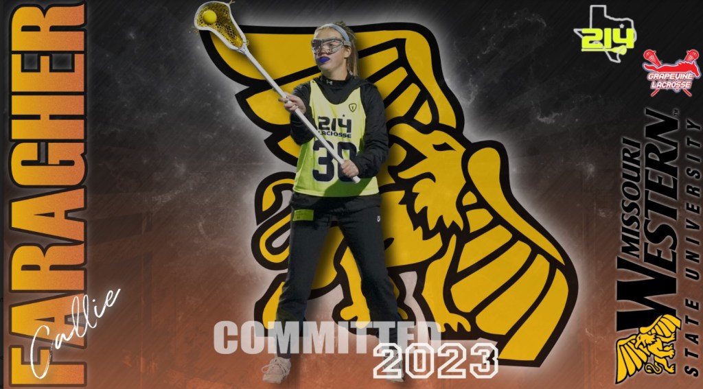 Grapevine (TX) 2023 midfield/attack Callie Faragher of 214 Lacrosse has made a verbal commitment to play Division II lacrosse at Missouri Western State University.